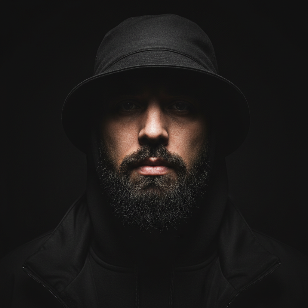 Man in Shadows: Dark Portrait With Bucket Hat Prompt