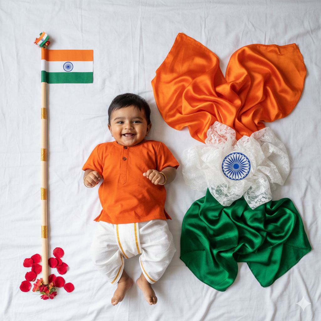 A vertical Hindu wedding invitation card background with a traditional South Indian aesthetic. At the top, a floral arch made of orange marigolds and mango leaves. The sides feature ornate cream-colored pillars and large green banana leaves. In the lower foreground, a stylized back-view illustration of a couple: a man in a white dhoti with a red and gold zari border (angavastram), and a woman in a rich gold and green silk saree with traditional jewelry. The background is a soft beige parchment texture with a subtle watermark of Lord Ganesha at the top center. High resolution, elegant, cultural, and vibrant